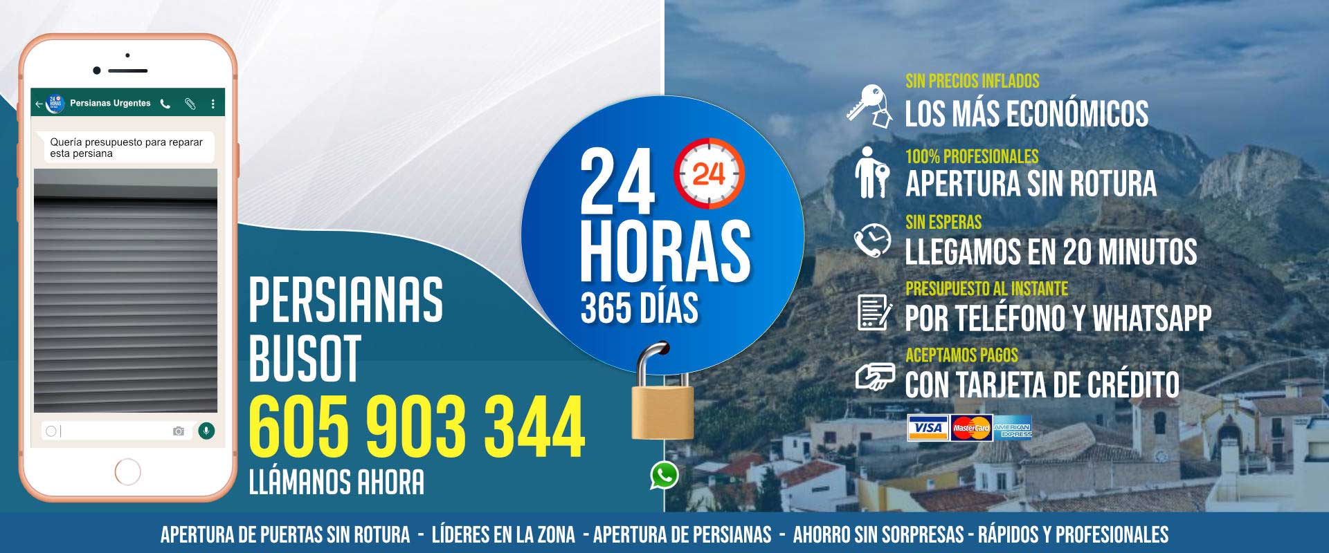 Las Persianas de Hogar tienen una función esencial a la hora de proteger del sol, frío e insonorización. Son un elemento muy útil que ofrece la posibilidad de controlar la ventilación de la casa y la privacidad. Reparamos y ofrecemos servicio a domicilio en la zona de Busot. Nos adaptamos en todo momento a las necesidades del cliente, donde contamos con una gran variedad de material de este tipo de persianas: madera, aluminio, PVC, etc.