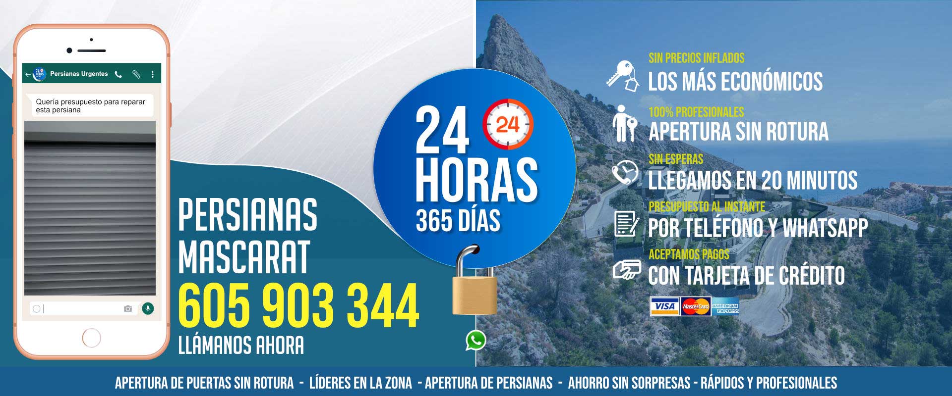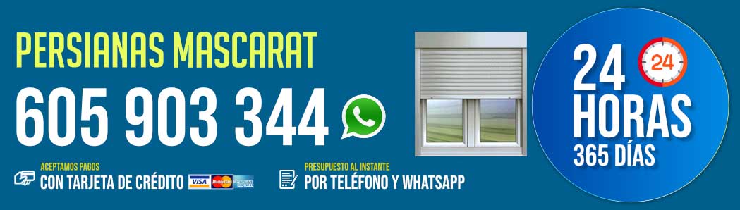 Tiene el mejor grupo de especialistas para reparación de persianas Mascarat. No lo decimos por exageración, nuestra experiencia data de hace más décadas. Puede comunicarse directamente con nosotros llamando al teléfono.